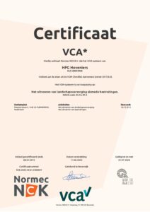 - VCA*: Toont aan dat bij HPG veiligheid, gezondheid en milieu beheerd worden tijdens het uitvoeren van werkzaamheden op de werkvloer. Tevens wordt continu gewerkt aan het veiligheidsbewustzijn tijdens het werk.